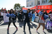 10日當天10點半,各社團開始陸續展現自己的風采:別具一格的服裝、火爆激情的舞蹈,震撼人心的音樂。隨著中午放學鈴聲的響起,招新活動達到了高潮,越來越多的同學來到百團招新現場。“這是我見過最宏大,最正式的一次招新活動。”接受采訪的某社長說道。由于招新的社團種類和數目繁多,同學們都詳細地詢問著各社團的情況,精心挑選自己喜歡的社團,希望通過積極參與社團活動豐富自己的大學生活。老社員們則不遺余力的為自己的社團吶喊助威,為新生們耐心的講解介紹。正午艷陽高照,但招新現場的氣氛比陽光還要火熱。同學們高漲的參與熱情,各個社團熱心的積極組織,使百團招新活動熱鬧有序地進行著。活動結束后,社團部的工作人員和各個社長還對活動場地進行了清掃工作。