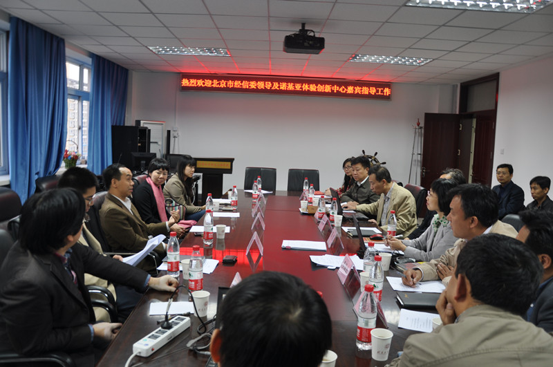 10月15日,應方德英副校長邀請,北京市經濟和信息化委員會萬新恒副主任、科技標準處林紹福處長、電子信息產業(yè)處楊愛民處長、諾基亞體驗創(chuàng)新中心傅蕾總經理等一行六人到計算機與信息工程學院參觀交流,并就學校與諾基亞體驗創(chuàng)新項目中的科技合作意向進行溝通。