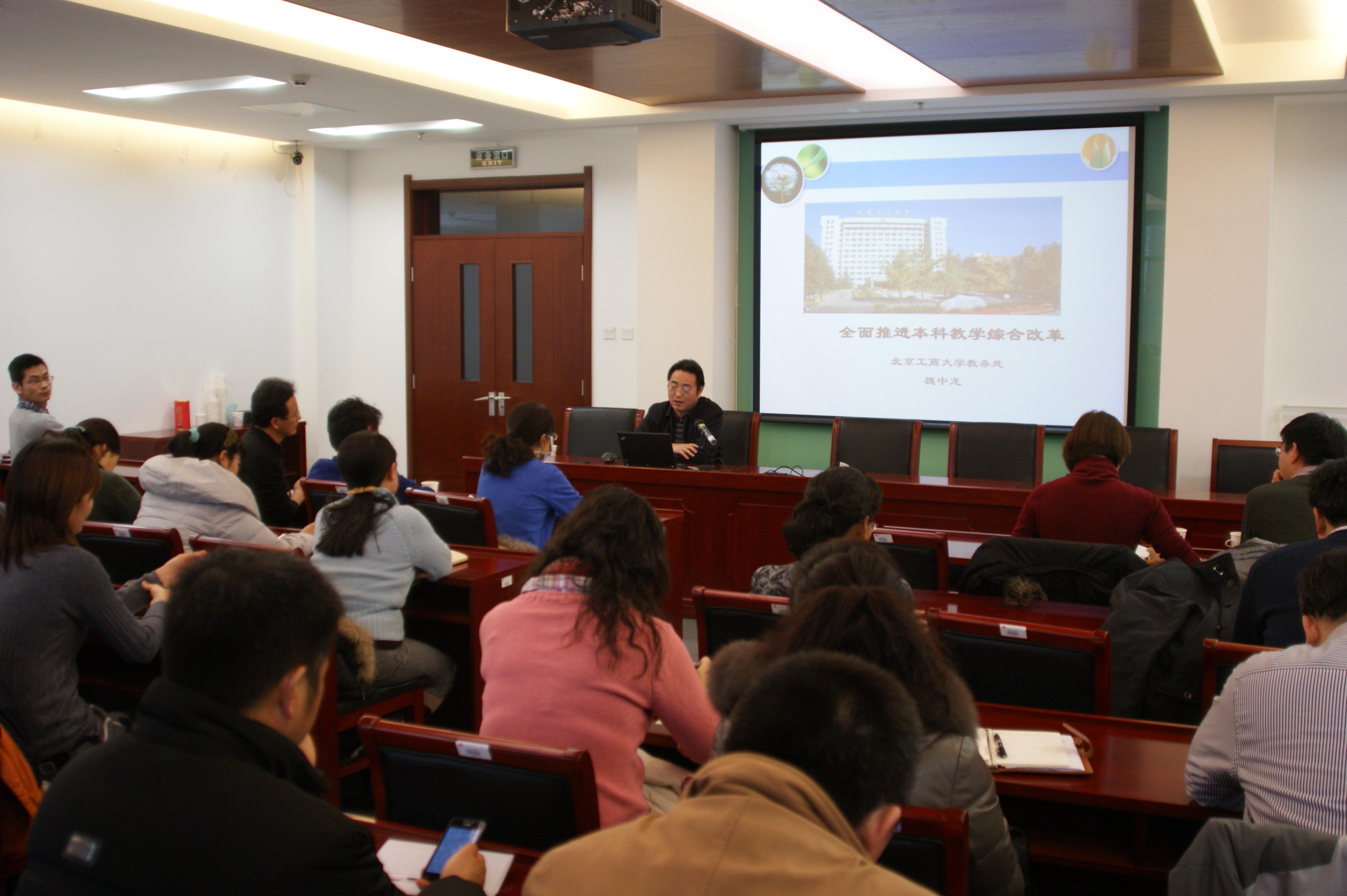 教育研究中心主任施楓做了主題為“教學改革與創新的思考”的報告,分別從中國崛起的新挑戰、高等教育的國際比較、中國高等教育存在的問題及改革方向、北京工商大學綜合改革的思考、食品學院的競爭優勢等5個方面進行了深入的闡述和分析。