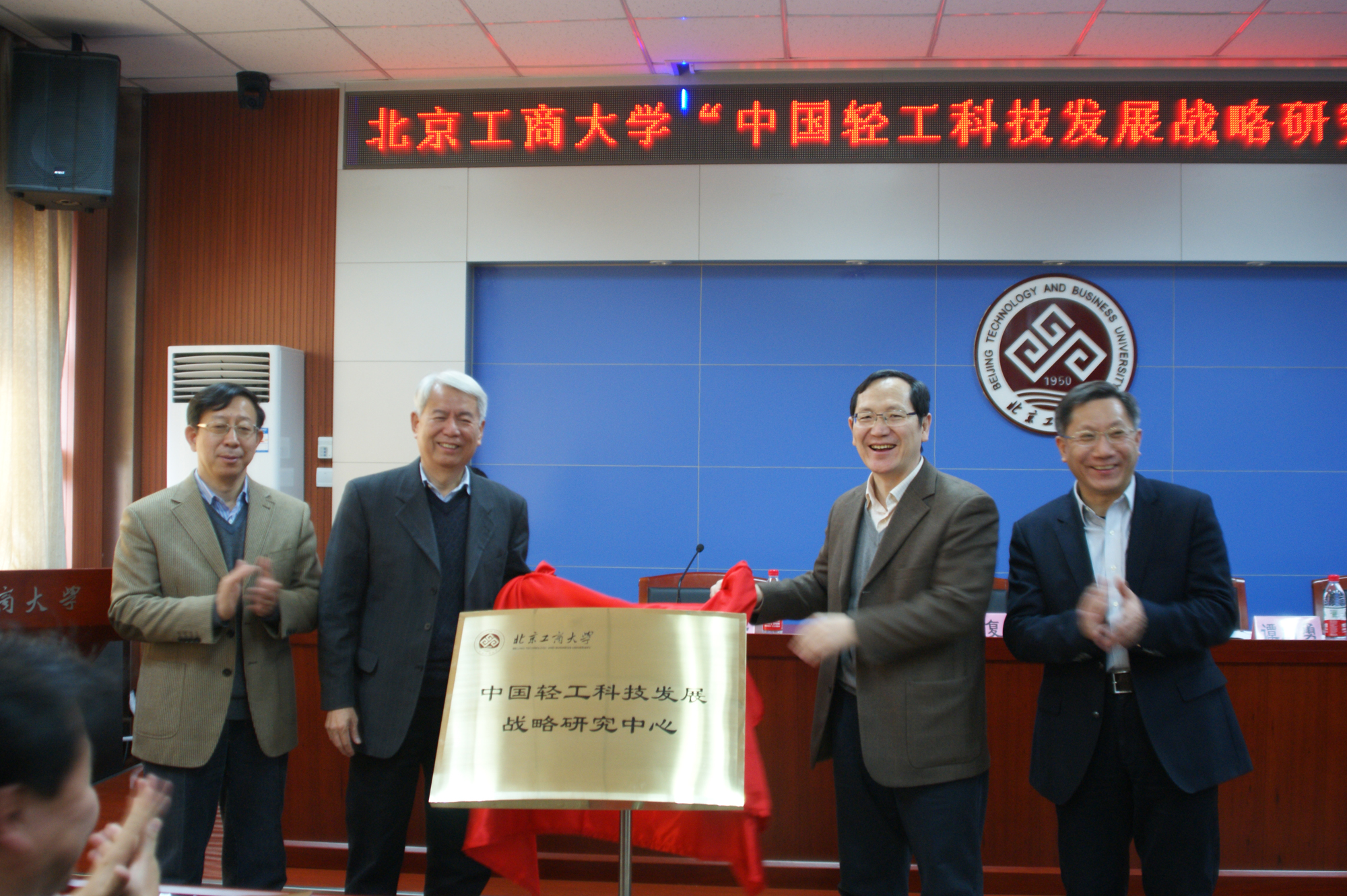 12月26日下午,北京工商大學(xué)“中國輕工科技發(fā)展戰(zhàn)略研究中心”揭牌儀式在我校隆重舉行。校長譚向勇、副校長孫寶國及中國工程院院士、我校雙聘院士陳克復(fù)出席揭牌儀式。儀式由副校長謝志華主持。