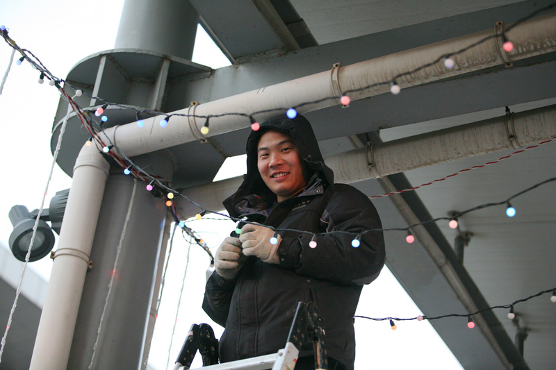 后勤管理處的張春富被問到2012年最快樂的事情的時候,笑了笑,用洪亮的聲音說,“是工作吧,能夠幫學(xué)校師生營造良好的生活環(huán)境,就是快樂。”談到最幸福的事情,他說道:“也是工作,工作雖忙,但讓我覺得我還有價值,能為師生服務(wù),這樣我就很幸福了。”張春富1979年來到北工商,今年已是第33個年頭。他每天的工作是負(fù)責(zé)維修學(xué)校的水、電、氣、暖,“一旦學(xué)生、老師打電話說有了故障,我們就要第一時間到現(xiàn)場維修,學(xué)校面積大,樓也多,走的路也多,但是這么多年,學(xué)校師生高興了,我們也就高興了。”