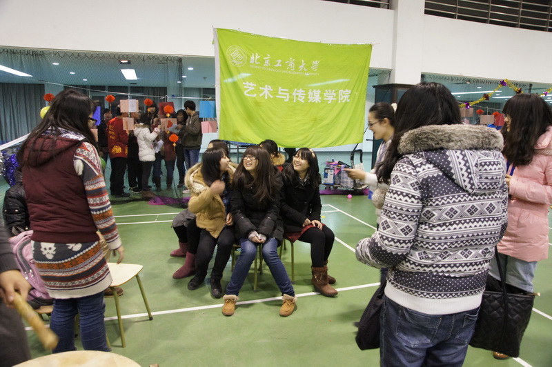 游園會上的游戲豐富多彩、形式多樣。幾個人為了僅有的一個凳子瘋狂拼搶,而旁邊的同學絞盡腦汁地猜著學習實踐部提前準備好的各種趣味燈謎,在紅白相間的氣球叢中,同學們在合作中你畫我猜。文體館中不時的傳來同學們踩爆氣球,噼里啪啦的模擬爆竹聲,更增添了一絲新年的熱鬧氣氛。心愿墻上貼滿了同學們對2013年的寄望:“希望2013年父母身體健康”,“希望2013年我要好好學習好好考研”,“2013年我們北工商要更加的強大”……