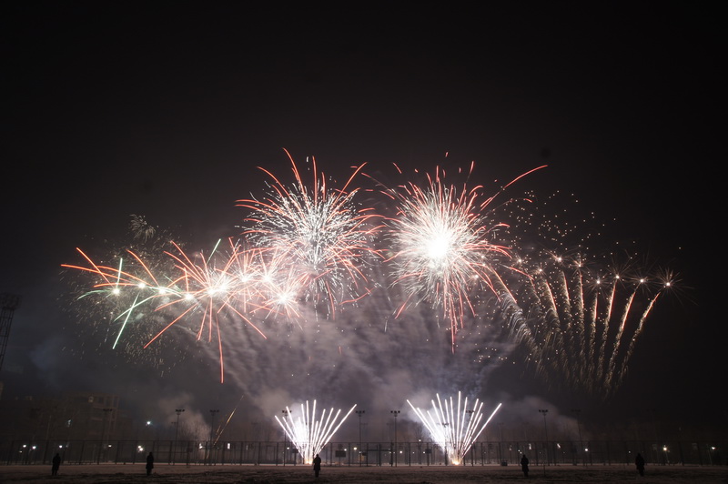 “火樹銀花不夜天,煙花飛舞迎新年。”21時35分,元旦晚會結束后的20分鐘,在學校體育場東側,焰火表演正式拉開帷幕。