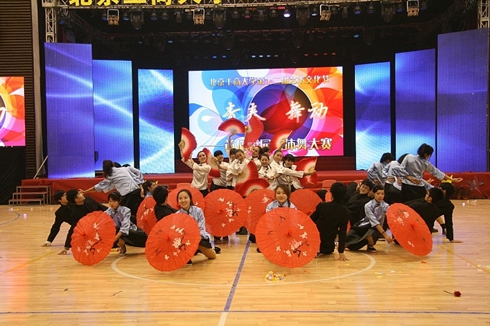 晚9點30分,“青春舞動”首屆校園集體舞大賽在文體館開場,各學院代表隊經過激烈角逐來到最后的賽場上一決勝負。在精心裝飾的青春舞臺上,工商學子釋放激情,舒展身軀,跳出北工商的昂揚風采,舞出北工商的奔放激情。