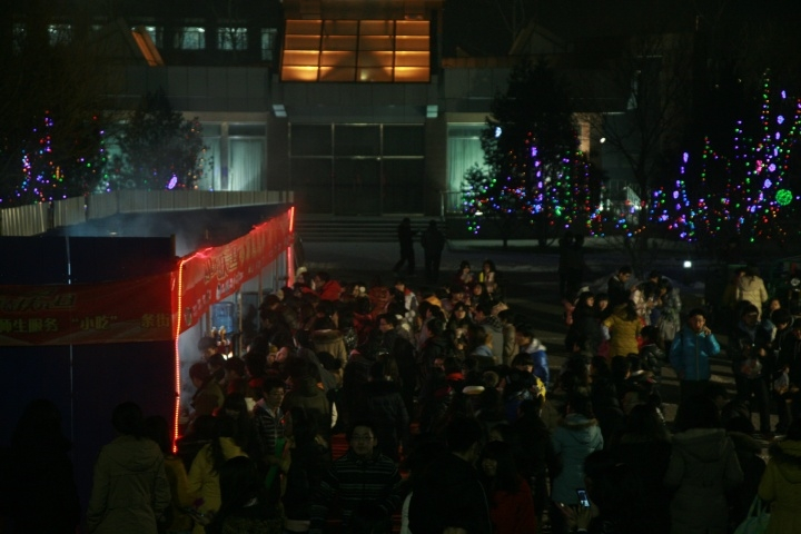 文體館中的歡呼聲讓節日充滿著感動與幸福,館外的小吃一條街也相當受歡迎。“小吃一條街”作為學校跨年盛典的傳統項目,今年已經是舉辦的第三屆。美食街上的小吃種類繁多,琳瑯滿目。美味可口的爆米花,香氣誘人的烤腸還有一杯杯熱乎暖心的奶茶和咖啡,不僅滿足了同學們的味蕾,更成為寒冷的冬夜中一道溫暖的風景線。