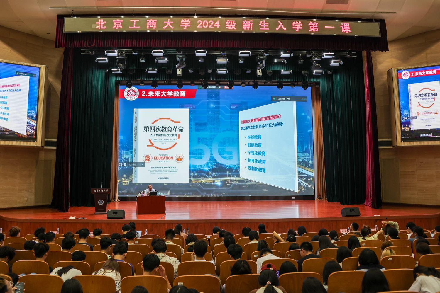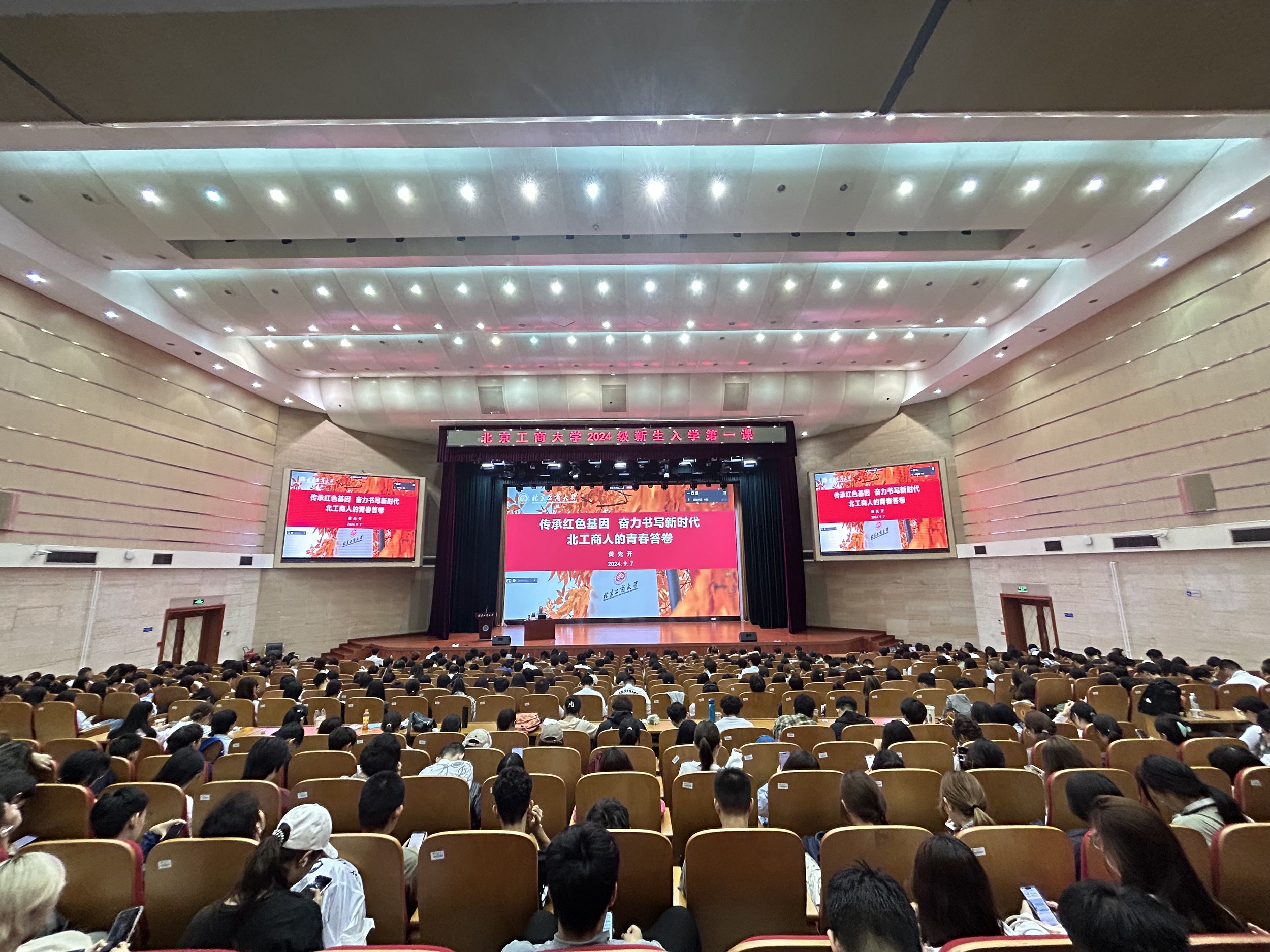 為落實立德樹人根本任務,深入實施時代新人鑄魂工程,扎實開展好新生入學教育,9月7日上午,學校黨委書記黃先開以《傳承紅色基因 奮力書寫新時代北工商人的青春答卷》為題,為全體2024級新生講授“開學第一課”,近3000名學生在良鄉主校區共同聆聽。