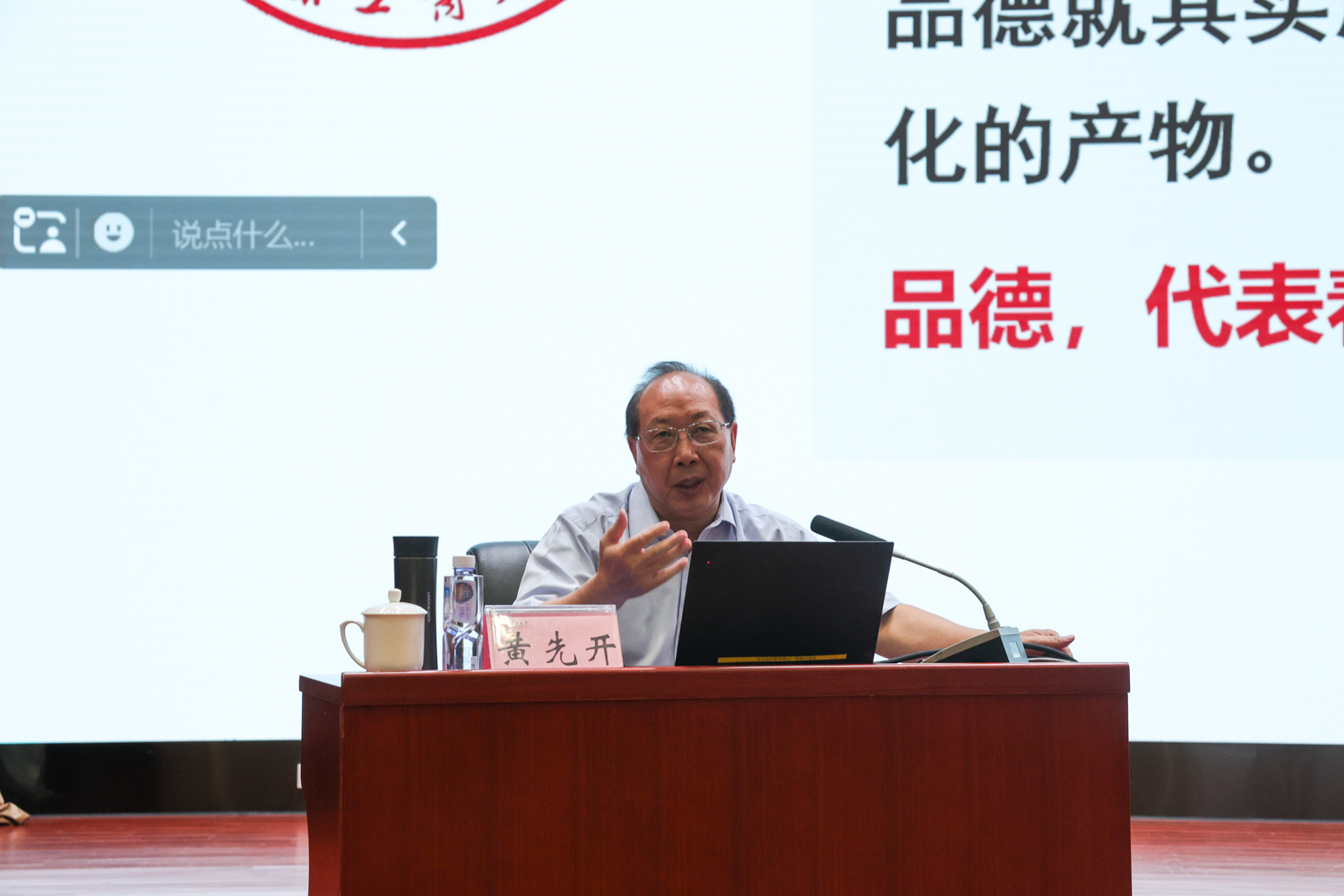 黃先開以學校發展歷史與愿景、校徽與大學教育和學習與成長成才三個篇章,為同學們講述了學校的發展沿革,總結了近年來學校錨定“雙一流”創建目標,統一思想、凝聚共識、匯聚合力,努力推動高水平研究型大學建設取得的新進展新成效。