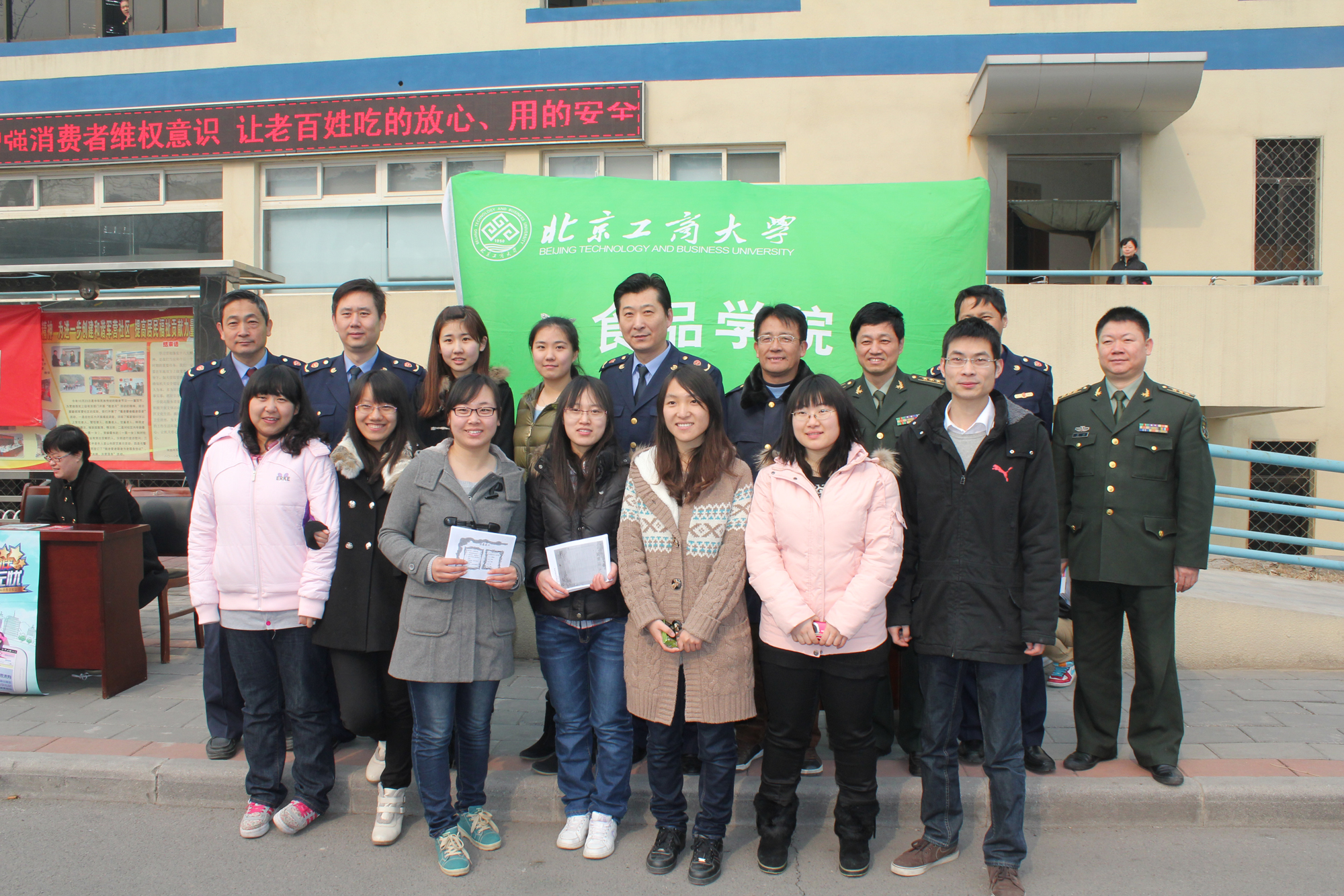 3月15日上午,我校食品學院第四學生黨支部與石景山工商分局、石景山區(qū)消費者協(xié)會、北京軍區(qū)聯勤部軍營社區(qū)、高井社區(qū)居委會和石景山區(qū)電視臺一起組織參與了石景山區(qū)“3.15”消費維權進軍營社區(qū)活動,該次活動在北京軍區(qū)聯勤部軍營社區(qū)舉行。食品學院第四學生黨支部書記夏賓、部分黨員和積極分子參與了此次活動。