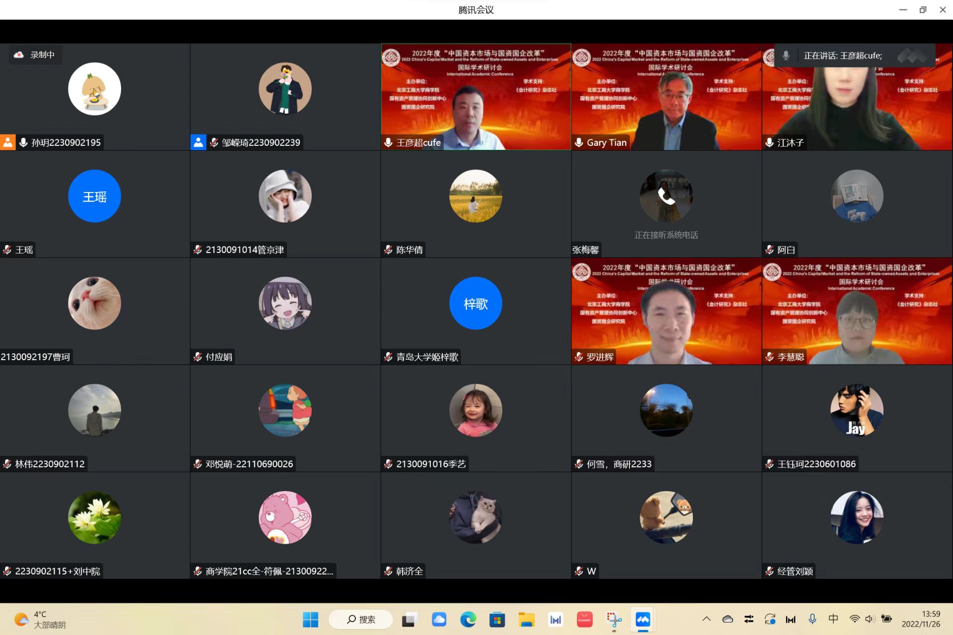 11月26日,第二屆“中國(guó)資本市場(chǎng)與國(guó)資國(guó)企改革”國(guó)際學(xué)術(shù)研討會(huì)采用線(xiàn)上會(huì)議方式召開(kāi)。我校副校長(zhǎng)龔六堂教授出席會(huì)議并致辭。我校原副校長(zhǎng)謝志華教授出席會(huì)議。香港大學(xué)、澳大利亞麥考瑞大學(xué)、香港城市大學(xué)、中國(guó)南方科技大學(xué)、中國(guó)人民大學(xué)、廈門(mén)大學(xué)、復(fù)旦大學(xué)等30余所高校的專(zhuān)家學(xué)者,我校研究生院院長(zhǎng)兼商學(xué)院院長(zhǎng)毛新述教授、商學(xué)院副院長(zhǎng)張偉華教授、商學(xué)院教師和研究生參加了此次會(huì)議。