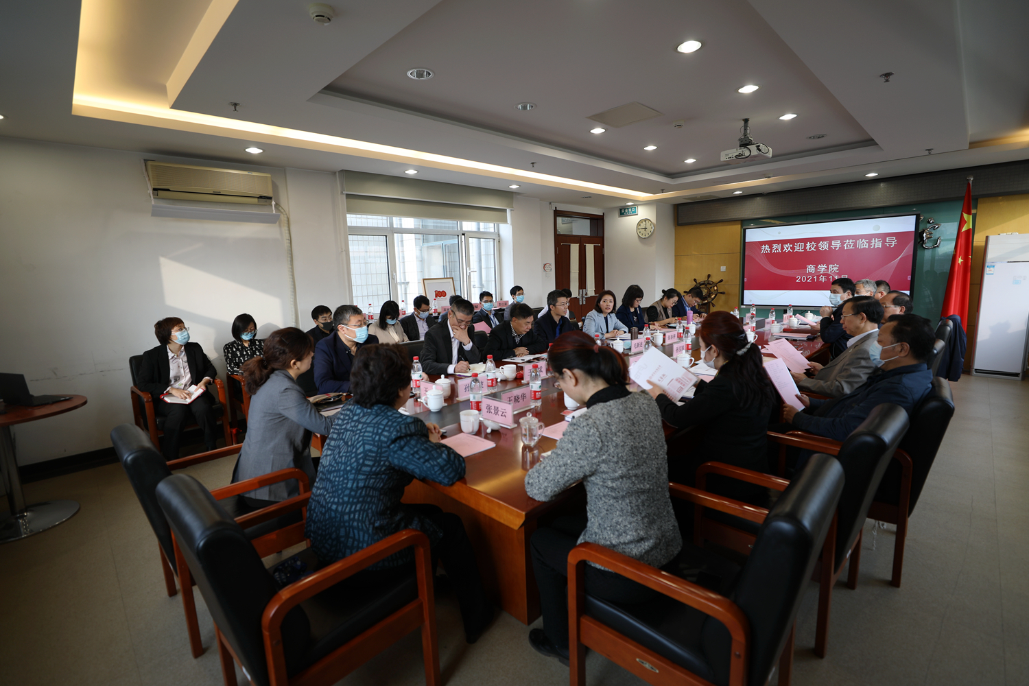 近日,學校黨委書記黃先開,黨委副書記、校長孫寶國,黨委副書記王偉、李中奇,黨委常委、副校長鄭文紅、徐丹丹到商學院調研指導工作。學院班子成員、教授代表和系主任等參加座談。座談會由商學院黨委書記張春萍主持。