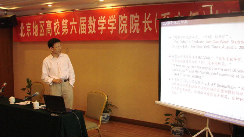本屆論壇的主題為“高校數(shù)學(xué)與統(tǒng)計(jì)學(xué)本科專業(yè)與學(xué)科建設(shè)”,旨在加強(qiáng)北京地區(qū)高校數(shù)學(xué)學(xué)院(系)之間的交流與合作,促進(jìn)各高校人才培養(yǎng)質(zhì)量的提高。論壇邀請了中國現(xiàn)場統(tǒng)計(jì)學(xué)會理事長、中國統(tǒng)計(jì)學(xué)會副會長、國務(wù)院學(xué)位委員會統(tǒng)計(jì)學(xué)科評議組專家,北京大學(xué)數(shù)學(xué)學(xué)院耿直教授作“統(tǒng)計(jì)學(xué)本科專業(yè)與學(xué)位點(diǎn)建”的主題報(bào)告,邀請北京理工大學(xué)數(shù)學(xué)學(xué)院院長陳一宏教授作了數(shù)學(xué)在人才培養(yǎng)中的重要作用的主題報(bào)告。