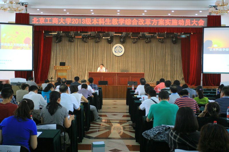 為推進落實我校本科教學綜合改革工作,6月26日下午,學校在阜成路校區(qū)召開本科教學綜合改革方案實施動員大會。校領導孫堯東、譚向勇、盧思鋒、李朝鮮、張耘出席會議。大會由副校長李朝鮮主持,各學院(部)院長、黨總支書記、黨總支副書記、教學副院長、系主任,各職能部門負責人,秋季學期為2013級新生和2012級本科教學綜合改革試點專業(yè)上課的教師,本科教學秘書,2013級擬任輔導員和班主任等250余人參加了會議。