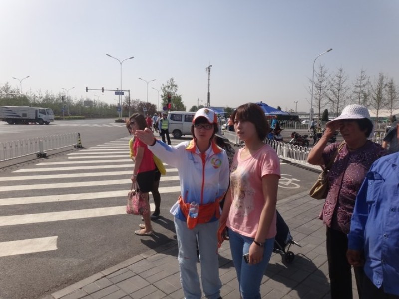 志愿者進行有效的交通疏導 微笑是志愿者們最美的名片