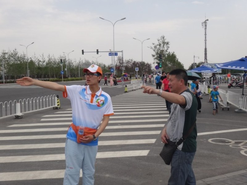 志愿者為游客指引路線 志愿者為游客介紹景點