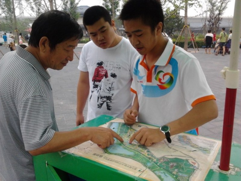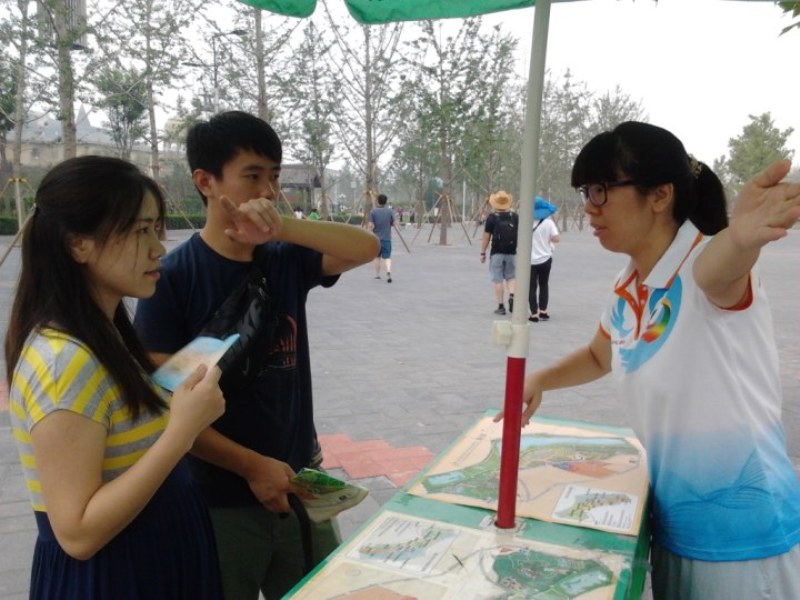 志愿者的無私奉獻讓風景更加美麗 志愿者為游客耐心地講解游覽路線