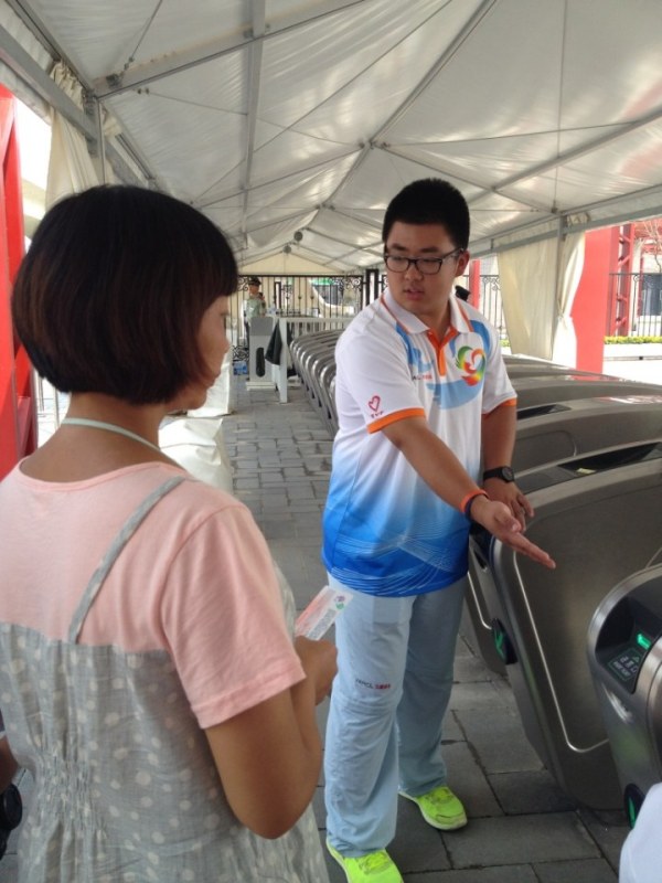 志愿者為游客提供貼心的服務 志愿者以飽滿的熱情面對每一天