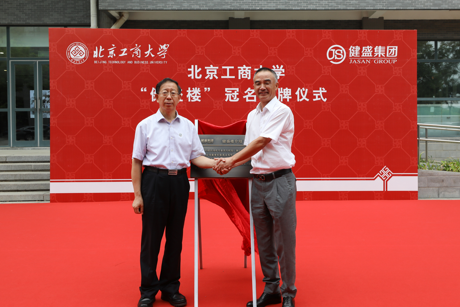 6月23日下午,北京工商大學“健盛樓”冠名揭牌儀式在良鄉主校區隆重舉行,黨委副書記、校長孫寶國院士,浙江健盛集團股份有限公司董事長張茂義、集團副總裁郭向紅出席儀式。儀式由我校副校長、教育基金會理事長張耘主持。