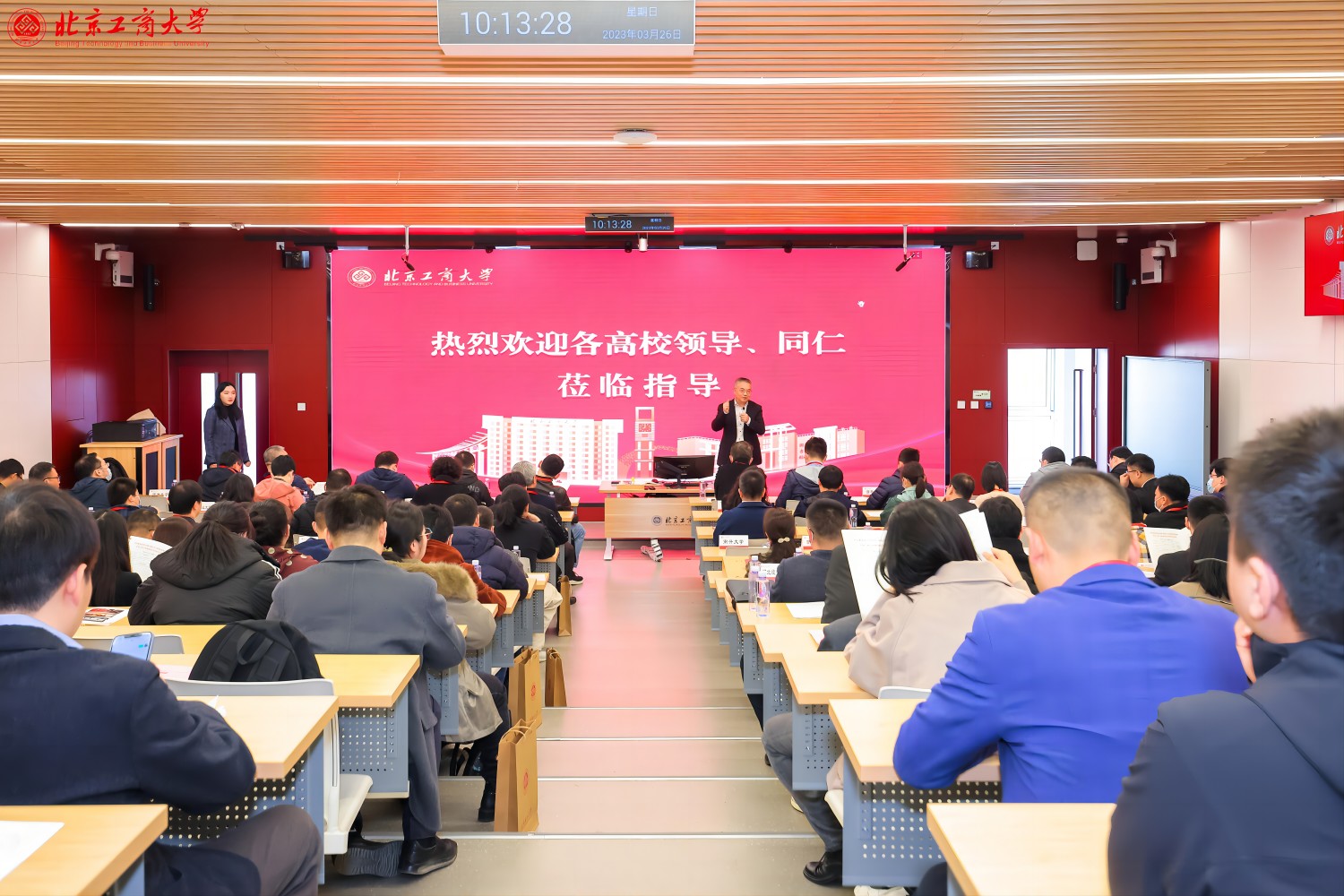 黨委書記黃先開致歡迎辭。黃先開提出,數(shù)字化轉(zhuǎn)型是北京工商大學(xué)未來發(fā)展的重要舉措,立足數(shù)字經(jīng)濟(jì)時(shí)代需求,傳承原有學(xué)科優(yōu)勢(shì),構(gòu)建了“一個(gè)聚焦、兩項(xiàng)支撐、三大提升、四個(gè)重塑”的教育數(shù)字化轉(zhuǎn)型新體系。樹立“以生為本、自定節(jié)奏、學(xué)習(xí)驅(qū)動(dòng)”的人才培養(yǎng)新理念;構(gòu)建“個(gè)性需求、能力導(dǎo)向、數(shù)字賦能”的人才培養(yǎng)新模式;打造“立足課程、服務(wù)師生、提升品質(zhì)”的商科課程管理新機(jī)制,依托數(shù)字技術(shù)建立課程中心和學(xué)分銀行,從以專業(yè)管理為主導(dǎo),轉(zhuǎn)變?yōu)橐哉n程管理為中心。這一轉(zhuǎn)型不僅需要思想觀念的變革,還需要整體提升廣大師生數(shù)字化思維和信息化素養(yǎng)。黃先開表示,學(xué)校堅(jiān)持問題導(dǎo)向,迎難而上,準(zhǔn)確識(shí)變、科學(xué)應(yīng)變、主動(dòng)求變,成立數(shù)字未來中心,開展了數(shù)字化轉(zhuǎn)型的多方位探索和多角度實(shí)踐,取得了一定成效。希望今后在北京市和各兄弟高校領(lǐng)導(dǎo)、同仁的大力支持下,在數(shù)字化轉(zhuǎn)型的道路上越走越遠(yuǎn),越做越好。