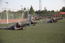 女學員們在足球場開始了撲俘拳的訓練。動作干脆利落,眼神很是霸氣,在教官手把手的幫助下,學員們的拳法逐漸顯得有力而連貫。雖然全連的女學員們較之軍人還少些雄壯的氣勢,但依然威武不凡,氣勢十足。這便是“巾幗不讓須眉”的氣勢,是女學員們認真投入的體現。