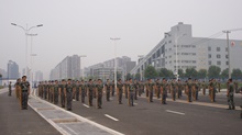 持續的高溫悶熱中,新一天的訓練又拉開了帷幕。雖然已經劃分了方陣,但是還需培養出默契。剛開始時,同學們的正步行進,怎么也不能走成一條直線。教官們耐心地一遍又一遍地指導,額頭上的汗水比同學們流得還多。功夫不負有心人,近三個小時的訓練讓同學們終于也能走得有模有樣了。