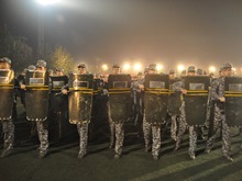 比起氣勢恢宏的方陣訓練,警棍盾牌操對于同學們來說是個陌生的訓練項目。外形如警盾,重量卻不輕。表演的同學們需要長時間拿盾,早上開始訓練時效果不盡如人意,但同學們毫無怨言,決不放棄,把握每分每秒堅持練習。訓練時雖然很苦,但苦中有甜,用平常心面對外界環境的挑戰。不能改變天氣,那就改變自己的心態。同學們以這種敬業的態度堅持著警棍盾牌操的訓練。