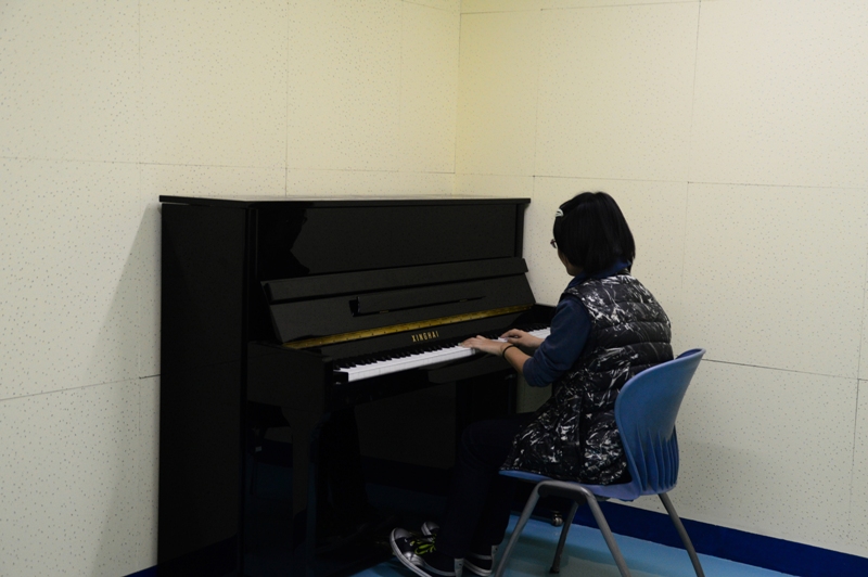 “樂•空間”以天空藍、草原綠以及鵝絨黃為主色調,清爽的色調消除了地下室給人的壓抑感覺。來過地下空間的同學紛紛表示,明亮而柔和的燈光、柔軟溫潤的色彩給人一種舒適感,聽著琴房里傳來的悠揚琴聲,感覺接受到了藝術的熏陶。同時,同學們也表示,在“樂•空間”能夠遇到很多志同道合的朋友,一起練琴、一起練舞,促進了對于藝術文化的追求,課余生活更加豐富多彩。