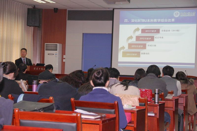 施楓主任以“中國經濟轉型與創新人才培養”為題,從中國經濟轉型對高等教育的挑戰、歐美國家高等教育比較、國內兄弟院校的發展動態、深化我校本科教學綜合改革等方面,系統論述了高等教育的規律和發展趨勢,介紹了國內外優秀高校的先進經驗,對我校本科教學綜合改革的問題和應采取的對策進行了深入的闡述。