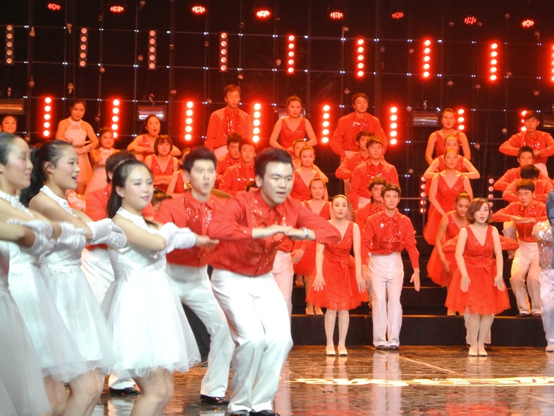 本次特別節目分為前期錄制和現場錄制。前期錄制中,合唱團骨干團員16人經過3天準備,用1個小時高質量地完成了4首經典歌曲串燒的錄音工作,受到節目組工作人員的好評。節目現場錄制當天,經過5個小時的化妝準備,于晚8點正式開始錄像,整個錄像期間我校合唱團的同學們克服各種困難積極參與排練,以精彩的表演展現了我校學子的藝術素養和積極向上的精神風貌。同學們亮麗的臺風與高漲的熱情得到了現場執行導演與舞蹈編導的一致贊揚。
