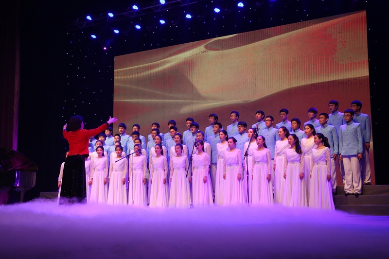 紅衣似火的合唱團同學在開場之際為在場觀眾獻上了《冬天里的一把火》等經典歌曲串燒,點燃了現場的激情;具有濃厚的少數民族氣息的《美麗的侗鄉》將觀眾們帶進了一個安詳寧靜的世界;十二位男生演繹的《老同學》唱出了濃濃的同學情誼;男女聲大合唱《大漠之夜》與《龍船調》氣勢恢宏、高亢婉轉,有很強的抒情性。合唱團學子們精彩而專業的演出贏得陣陣掌聲。來自外國語學院的哈薩克族學生阿依提江演唱的《可愛的一朵玫瑰花》,將觀眾帶到了遼闊的新疆大草原。