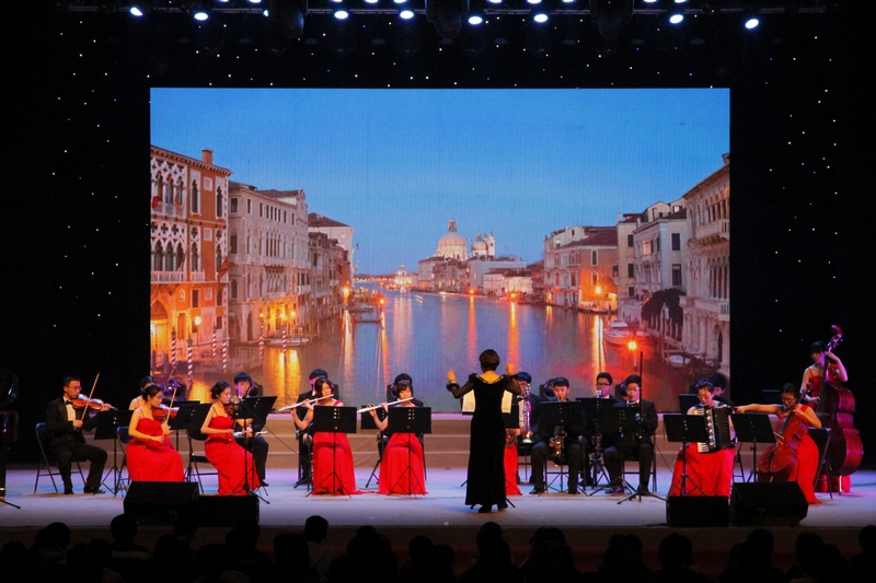 校管樂團為大家帶來的是《嫉妒》、《在云端》以及《76支長號》,交響樂完美結合了管樂和弦樂,讓這場聽覺盛宴完美激昂。多種樂器的聲音和諧的融合在一起,久久回蕩在會場。