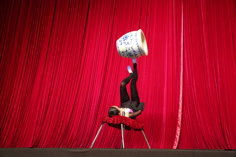曾獲2011年星光大道周冠軍的翟長樂、楊云霞為師生們帶來了《滑稽雜技》,他們身著小丑服裝,用滑稽、輕松的雜技表演和不時變換的手中小道具帶給大家陣陣歡笑。曾獲全國雜技比賽優秀獎的演員玲瓏表演的《蹬技》,用腳頂起水缸和桌子平穩旋轉,引得觀眾紛紛喝彩。中國廣播藝術團的相聲演員孫仲秋、遲永志帶來的《歡歌笑語》令觀眾們捧腹大笑,紛紛鼓掌叫好。