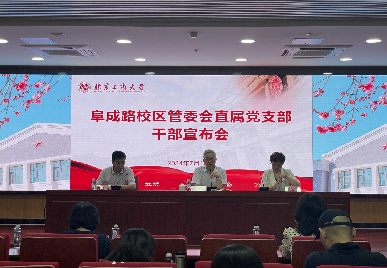 黨委常委、組織部長武晶晶宣讀了學校黨委設立中共北京工商大學阜成路校區管委會直屬黨支部,任命張曉磊同志為阜成路校區管委會直屬黨支部書記的決定。