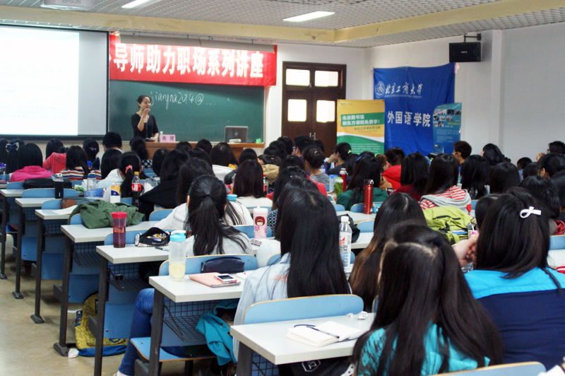 英語專業(yè)出身的蔣娜老師,具備多年麥肯錫咨詢公司HR相關(guān)經(jīng)驗(yàn),曾為10多家世界500強(qiáng)企業(yè)提供服務(wù),具有豐富外企求職培訓(xùn)經(jīng)歷。蔣老師從職業(yè)規(guī)劃、簡(jiǎn)歷制作、面試技巧三個(gè)方面展開演講,她立足于英語專業(yè)特點(diǎn),結(jié)合具體案例和實(shí)戰(zhàn)經(jīng)驗(yàn),講解職業(yè)規(guī)劃四象限,強(qiáng)調(diào)求職技巧和面試細(xì)節(jié)的重要性,特別就英文簡(jiǎn)歷書寫的格式和內(nèi)容具體講解,突出實(shí)用性。同學(xué)們普遍反映蔣老師充滿激情、風(fēng)趣幽默的講課風(fēng)格感染性強(qiáng),與同學(xué)們積極互動(dòng),使大家對(duì)英語專業(yè)的擇業(yè)、求職、就業(yè)有了充分的認(rèn)識(shí)和了解,受益匪淺。