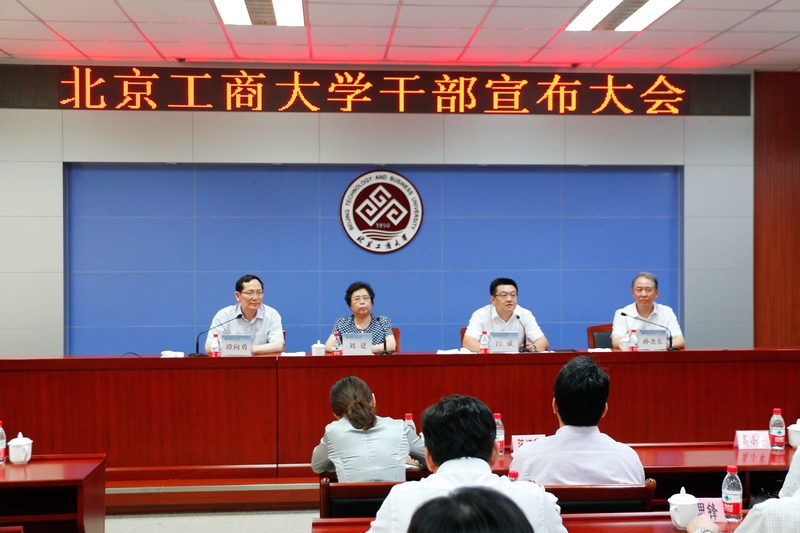 7月1日下午, “北京工商大學干部宣布大會”在阜成路校區(qū)召開。市委組織部副部長閆成、市委教育工委常務(wù)副書記劉建等出席大會。全體校領(lǐng)導(dǎo)、中層干部以及工會、教代會、學生代表等140余人參加大會。會議由劉建主持。