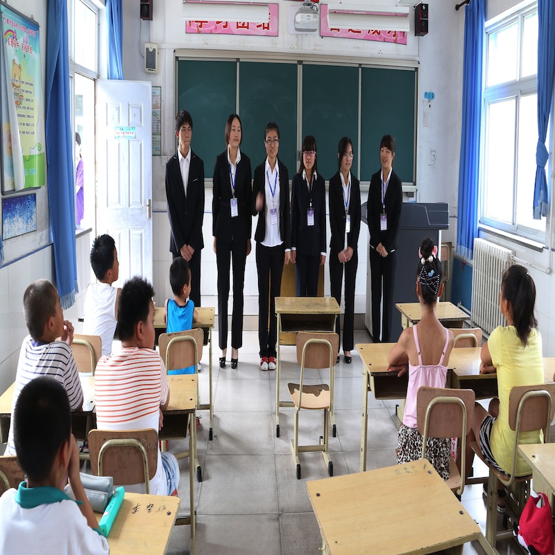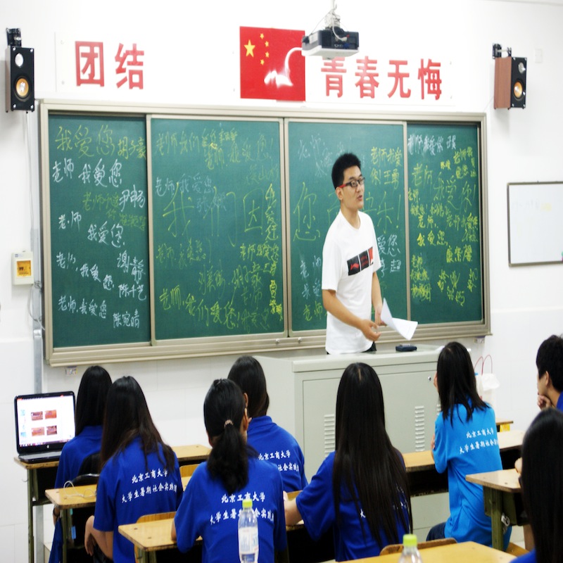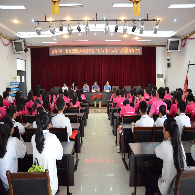 經(jīng)濟(jì)學(xué)院的50名學(xué)生在團(tuán)總支書記單紫薇和輔導(dǎo)員馬騰的帶領(lǐng)下來到房山五中,開展“獻(xiàn)青春年華,行夢(mèng)想之路”的暑期夏令營(yíng)支教活動(dòng)。