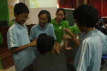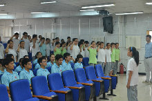 晚上七點半,老師對一天的活動進行總結之后,全體成員在操場上開展了拓展活動。開始的自我介紹拉近了彼此間的距離,剪刀石頭布等游戲增進了彼此的交流,最后由得分最少的小組給大家表演了精彩的節目。伴著朗朗笑聲,今天的活動也接近了尾聲,大家在辛苦中品味著快樂,在實踐中增長著知識,每一個人都肩負使命,懷著信心來迎接新的一天。