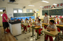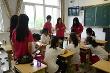 今天的課程有生活禮儀、日語、韓語、趣味數學、健美操、寫作等等,與平時在學校所學習的知識內容更輕松一些,學生們也很積極配合。