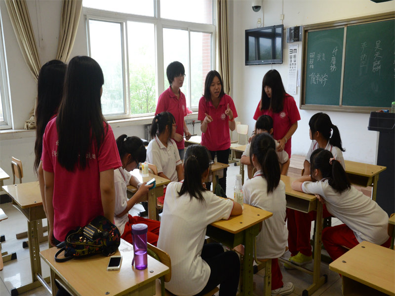 7月6日清晨,實踐團成員迎來了與交道中學學生的第一次見面。走進教室,實踐團成員用熱情消融了師生間初次見面的陌生感。有的暢談大學生活與人生理想,有的通過心理團隊游戲的方式與同學們迅速熟悉起來。同學們求知的目光激發了成員們的熱情,紛紛表示要在日后的實踐活動中擔負起老師的責任,幫助同學們開拓眼界。