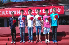 此外,在今天這個特殊的日子里,學校2014年入伍大學生士兵歡送會在體育場隆重舉行,新生代表為入伍學生佩戴了紅花,鮮艷的紅花,寄托著母校的希望和祝愿,也承載著國家的期冀與肯定。黨委副書記、軍訓總指揮盧思鋒在大會中代表學校祝賀38名熱愛祖國、勇于擔當的大學生光榮入伍,并希望他們努力為國家的國防建設做出貢獻。