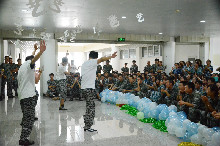 歡樂的演出結束之后,同學們又迅速投入到緊張的訓練之中。上午以方陣訓練和拳術為主,下午繼續訓練表演科目,晚上7:00正式開始全校集體合練。合練表演十分關鍵,同學以及教官都非常重視這一部分的表現,因此訓練仍舊在馬不停蹄的進行著。