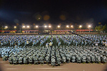 黨委副書記盧思鋒對今晚的合練做了總結講話,向新生告知了幾點軍訓結束后正式開學的安排,并向同學們介紹了北工商的放假安排,充分體現(xiàn)了學校的人性化管理,贏得了新生陣陣掌聲。
