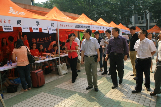 校黨委書記譚向勇、副校長謝志華、李朝鮮、方德英等先后來到迎新現場,與負責接待工作的學院領導、研究生輔導員、學生干部、迎新志愿者,以及新生和家長們進行了親切交流。校領導對各學院招生情況及后勤保障工作尤為關心,詳細詢問了迎新工作的落實情況,并對聚集到北工商的優(yōu)秀學子們表達了誠摯的祝福和期盼,希望他們以工商為家,努力鉆研,好好把握三年的研究生生涯,做好人生規(guī)劃。