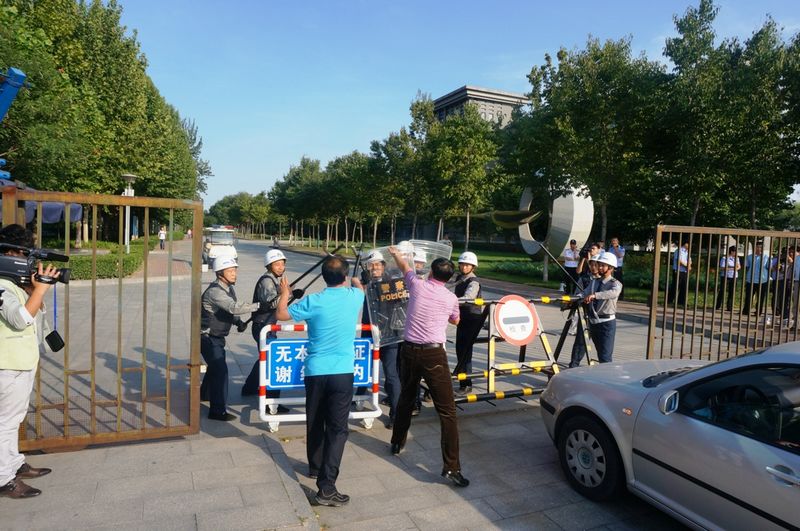 演練設(shè)計(jì)了模擬歹徒硬闖校園的場(chǎng)景。15:40,有兩名“歹徒”硬闖學(xué)校良鄉(xiāng)校區(qū)教學(xué)區(qū)西門被保安阻擋,并與保安爭(zhēng)執(zhí)起來(lái),“歹徒”從車上拿出棍子進(jìn)行恐嚇,保安迅速報(bào)校園110,一會(huì)兒6名保安手持盾牌和防暴棍趕到現(xiàn)場(chǎng)進(jìn)行阻擋,雙方僵持不下。此時(shí)保安迅速撥打“110”,15分鐘后,多輛警車、多名持槍警察及兩只警犬趕到現(xiàn)場(chǎng),將“歹徒”制服。