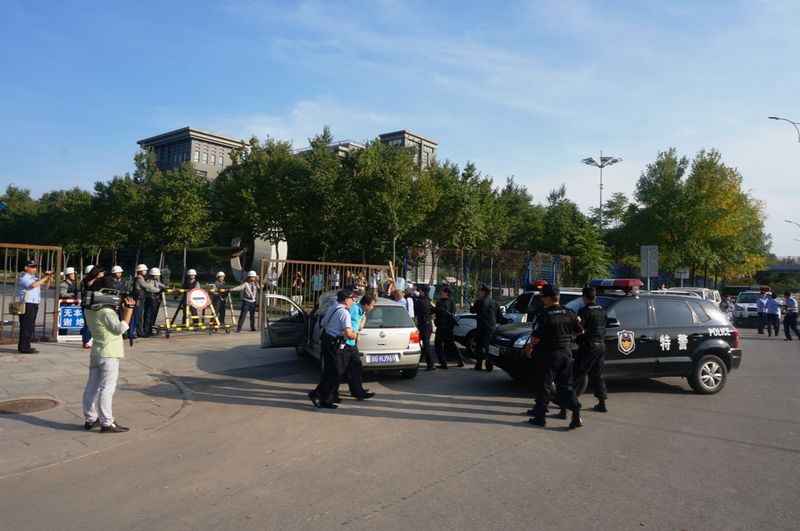 9月27日學(xué)校保衛(wèi)處協(xié)助房山公安分局在良鄉(xiāng)校區(qū)進(jìn)行了一次反恐演練,檢驗(yàn)公安機(jī)關(guān)和學(xué)校保安處置暴力恐怖襲擊事件的能力和應(yīng)急反應(yīng)速度。演練現(xiàn)場(chǎng)形象而逼真。