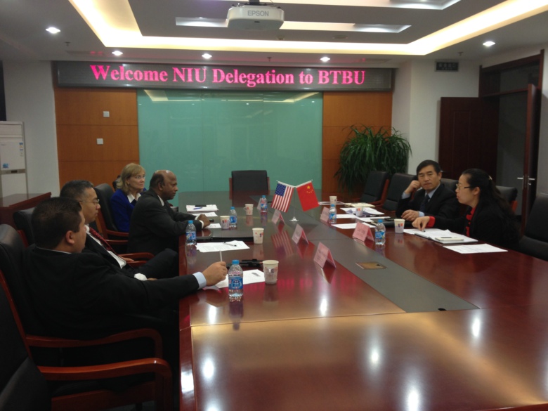 美國北伊利諾伊大學副校長瑞•艾登(Ray Alden)、校長助理保羅•普拉海科(Paul Prahaker)、商學院副院長伊麗莎白•貝斯(Elisabeth Beth)、商學院運營管理系主任劉昶、商學院MBA項目負責人安東尼•普瑞斯頓(Anthony Preston)和中國事務負責人吳蓓,我校國際交流與合作處處長何明珂、副處長劉影、人事處處長張曉堂、教育研究中心主任施楓、計算機與信息工程學院院長蔡強、副院長郭培源、副院長姜同強、經濟學院副院長李書友、商學院黨總支書記歐陽愛平、副院長楊浩雄參加了會談和會見。