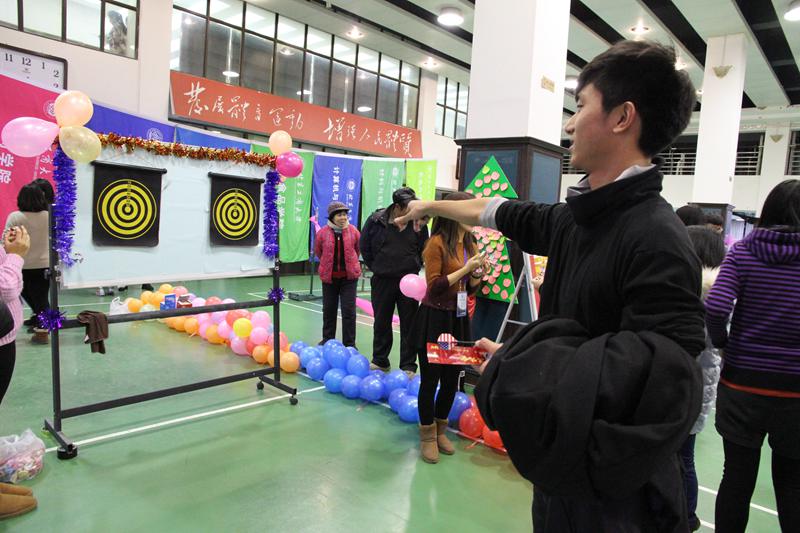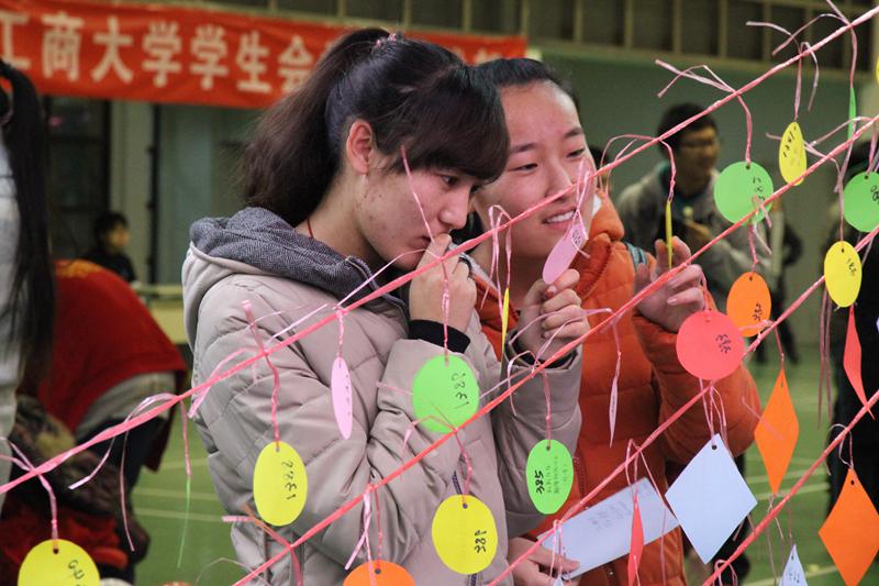 寒冷的北風(fēng)擋不住工商學(xué)子對(duì)元旦晚會(huì)的熱情,而一層游園會(huì)活動(dòng)也給學(xué)子們帶去了別樣的歡樂。本屆游園會(huì)由校學(xué)生會(huì)主辦,九個(gè)學(xué)院協(xié)辦,大家集思廣益設(shè)計(jì)了一個(gè)個(gè)精彩的游戲,準(zhǔn)備了各不相同的豐厚禮品。“我們是以一個(gè)體現(xiàn)者的角度去設(shè)計(jì)這些游戲。”商學(xué)院的外聯(lián)部部長(zhǎng)介紹說,“我們也為同學(xué)們準(zhǔn)備了學(xué)習(xí)用具作為小禮物。”計(jì)信的同學(xué)們則貼心地準(zhǔn)備了寫好游戲規(guī)則的小貼士,方便大家參與其中。這使得未能觀看晚會(huì)的同學(xué),可以在游園會(huì)中感受到新年的熱情。“我覺得游園會(huì)非常有趣。”趁著休息時(shí)間來到會(huì)場(chǎng)的演職人員們這樣說道。游園會(huì)讓大家沉浸在了一片喜氣洋洋之中。