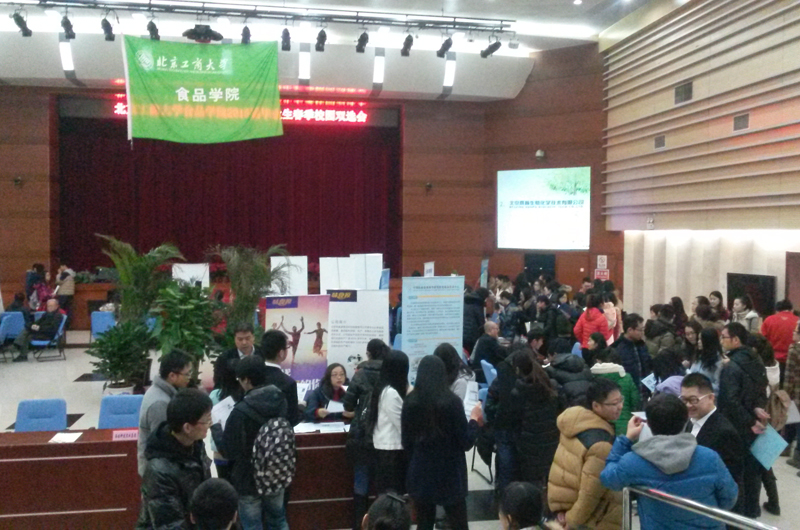 為進一步促進畢業生就業,提高畢業生就業質量,認真落實2015屆畢業生的就業工作,更好的為畢業生和用人單位服務,1月12日食品學院在阜成路校區禮堂舉辦了食品學院首屆校園專場“雙選會”。共邀請專業相關單位23家,其中有北京桑普生物化學技術有限公司、北京鴻禧香精香料有限公司、北京盛妝家化有限公司等與我院長期合作的單位,也有北京普瑞特水處理有限公司、羅伯特香精香料(北京)有限公司等新近建立聯系的單位。吸引近200名畢業生前來應聘。