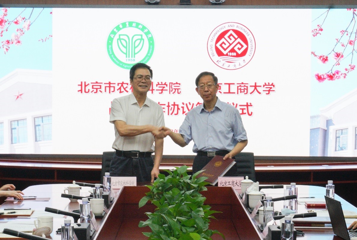 7月27日,學(xué)校與北京市農(nóng)林科學(xué)院簽署戰(zhàn)略合作協(xié)議。北京市農(nóng)林科學(xué)院黨組書記吳寶新、院長李成貴,學(xué)校黨委書記黃先開,黨委副書記、校長孫寶國出席簽約儀式。會(huì)議由學(xué)校黨委常委、副校長劉敏華主持。