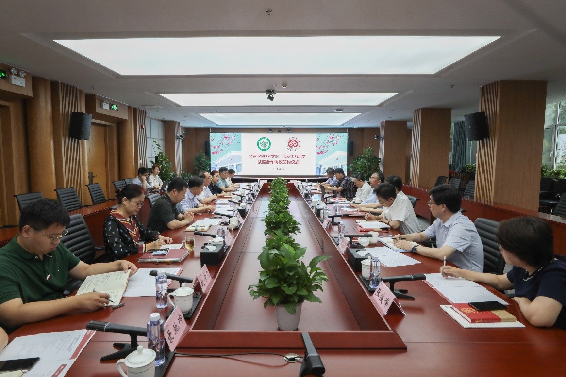 北京市農(nóng)林科學(xué)院黨組成員、副院長張闖、楊國航、燕繼曄,學(xué)校黨委常委、副校長徐丹丹、左敏及相關(guān)部門負(fù)責(zé)人出席會(huì)議。