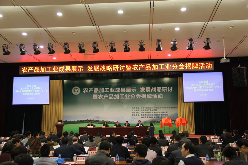 3月2日,由中國農(nóng)業(yè)科學(xué)院、中國優(yōu)農(nóng)協(xié)會和農(nóng)業(yè)部農(nóng)產(chǎn)品加工局主辦的“農(nóng)產(chǎn)品加工業(yè)成果展示、發(fā)展戰(zhàn)略研討暨農(nóng)產(chǎn)品加工業(yè)分會揭牌活動”在中國農(nóng)科院舉行。我校校長孫寶國院士應(yīng)邀出席并作主旨報告。來自全國各地的中國優(yōu)農(nóng)協(xié)會農(nóng)產(chǎn)品加工分會會員、研發(fā)體系各分中心代表、各省農(nóng)科院加工所所長以及農(nóng)產(chǎn)品加工龍頭企業(yè)代表等近300名參加了會議。